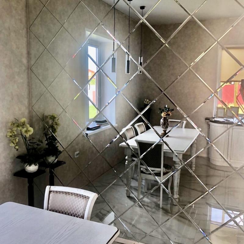 Использована серебряная квадратная зеркальная плитка.